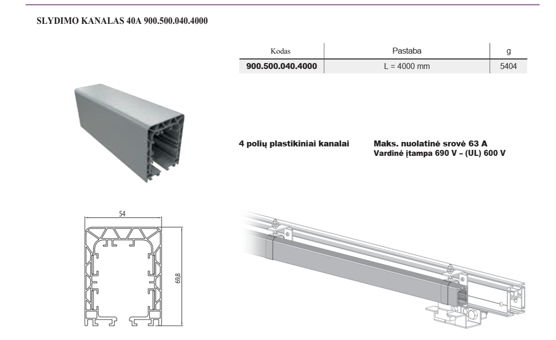 3000 mm slydimo kanalas 40A