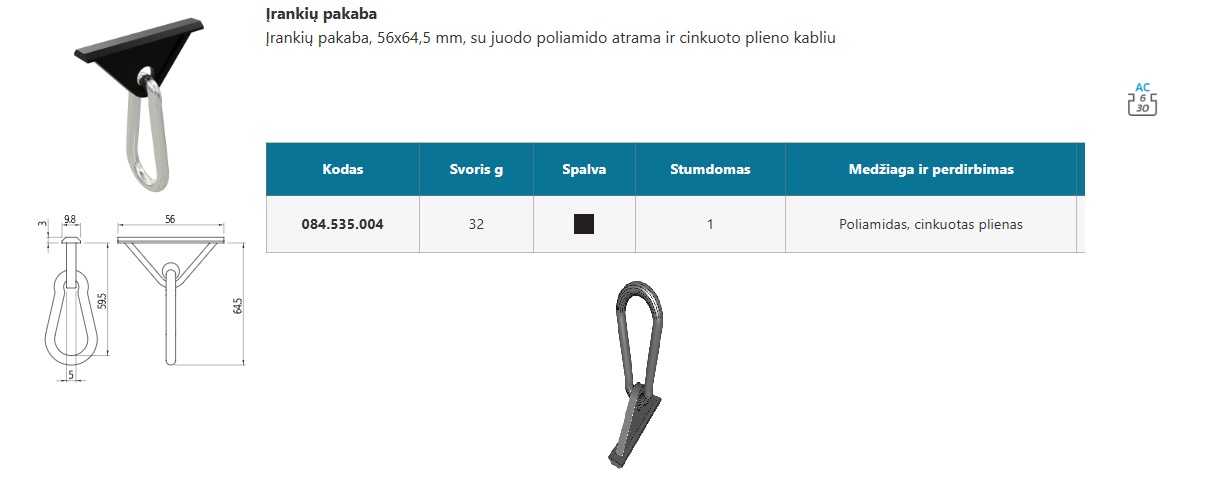 6 AC 13x22,5 mm, 1 griovelio 30 serijos aliuminis profilis