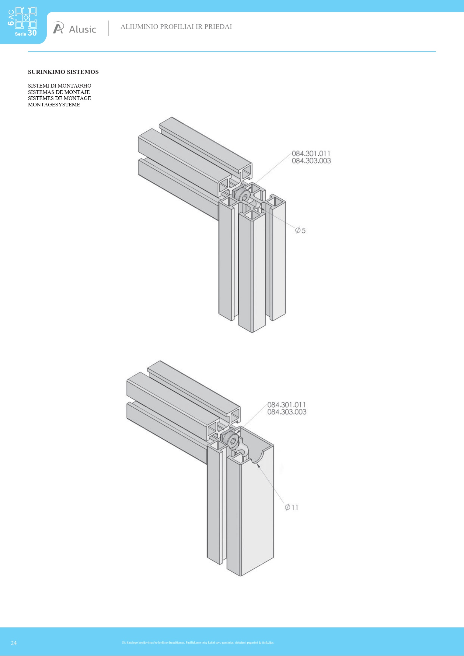 6 AC 22,5x22,5 mm, 2 griovelių 30 serijos aliuminis profilis