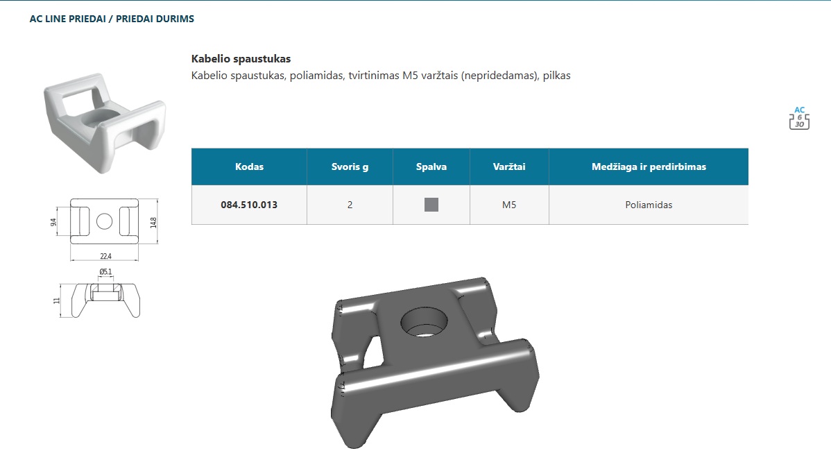 6 AC 13x22,5 mm, 1 griovelio 30 serijos aliuminis profilis
