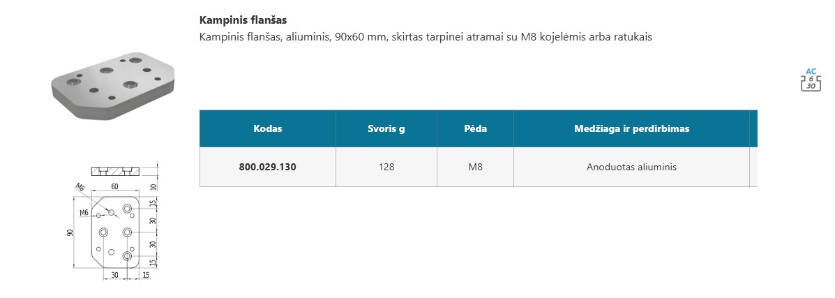 • Alusic 30 serijos profiliai su 6 mm kvadratiniu tvirtinimo T formos grioveliu vienas iš geriausių stiprumo ir svorio santykių.
