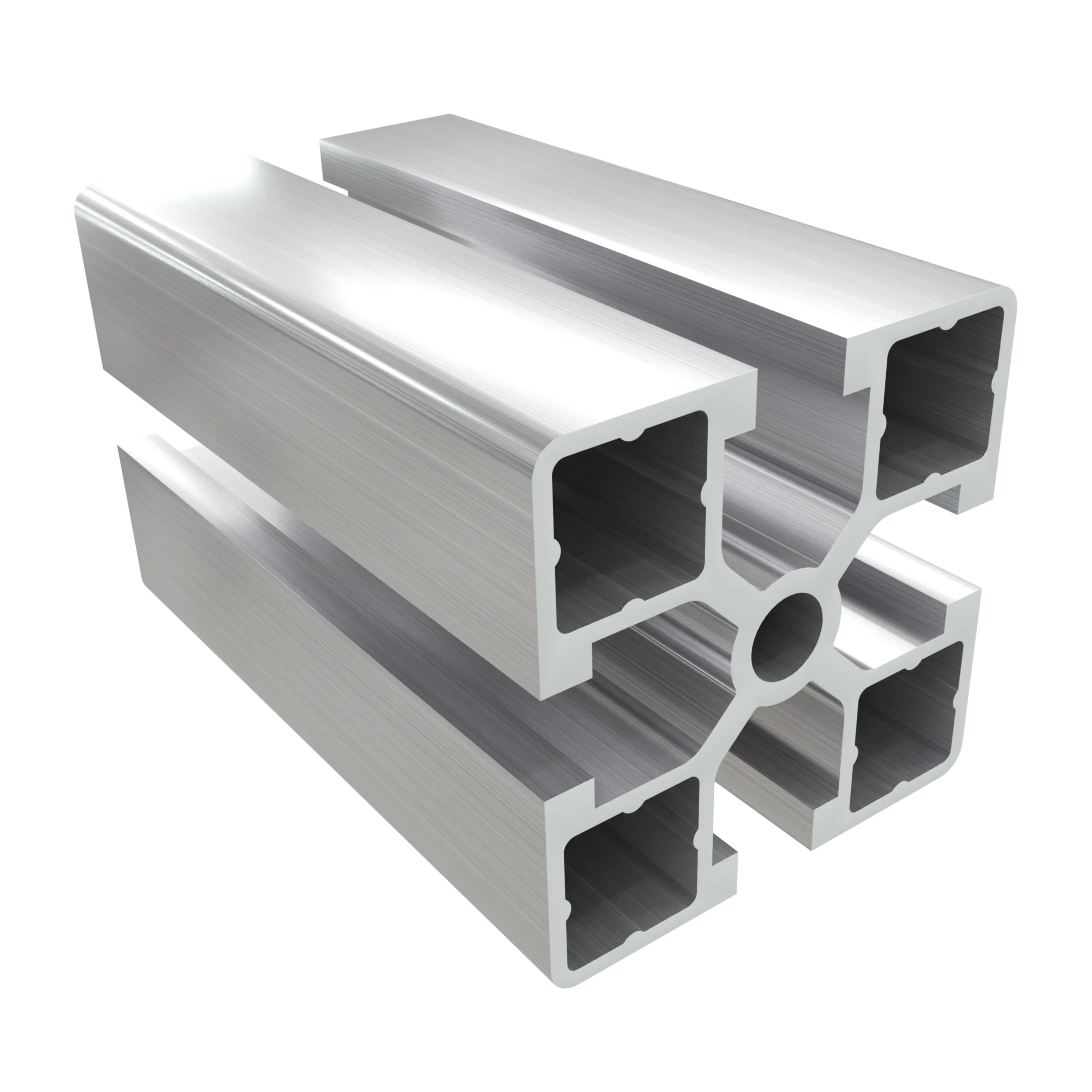 • 45 serijos kvadratinis palengvintas aliuminio profilio profilis, 45 x 45 mm su 4 x 8 mm grioveliais aliuminio strypas.