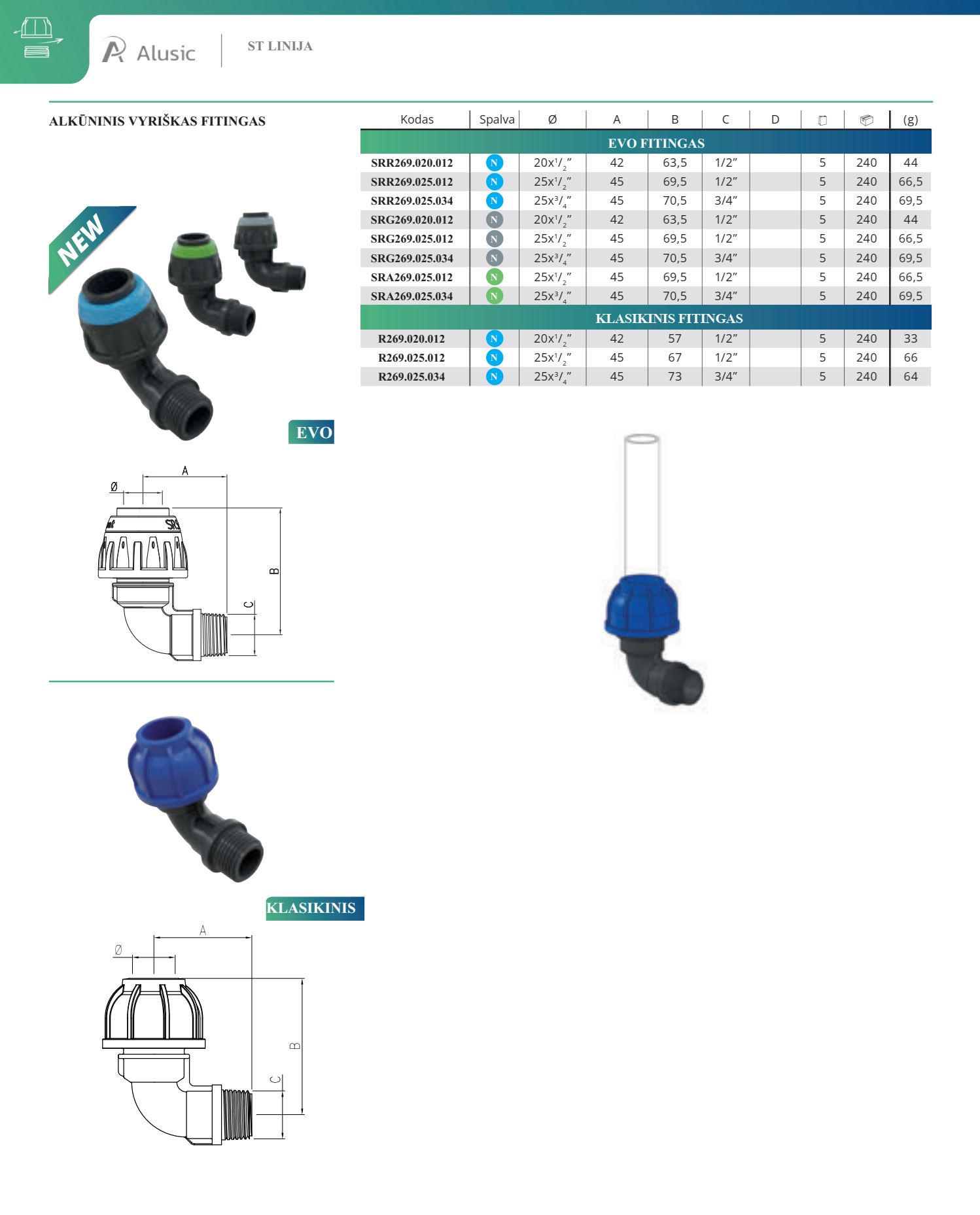45 laipsnių jungtis suslėgto oro sistemose serija SR