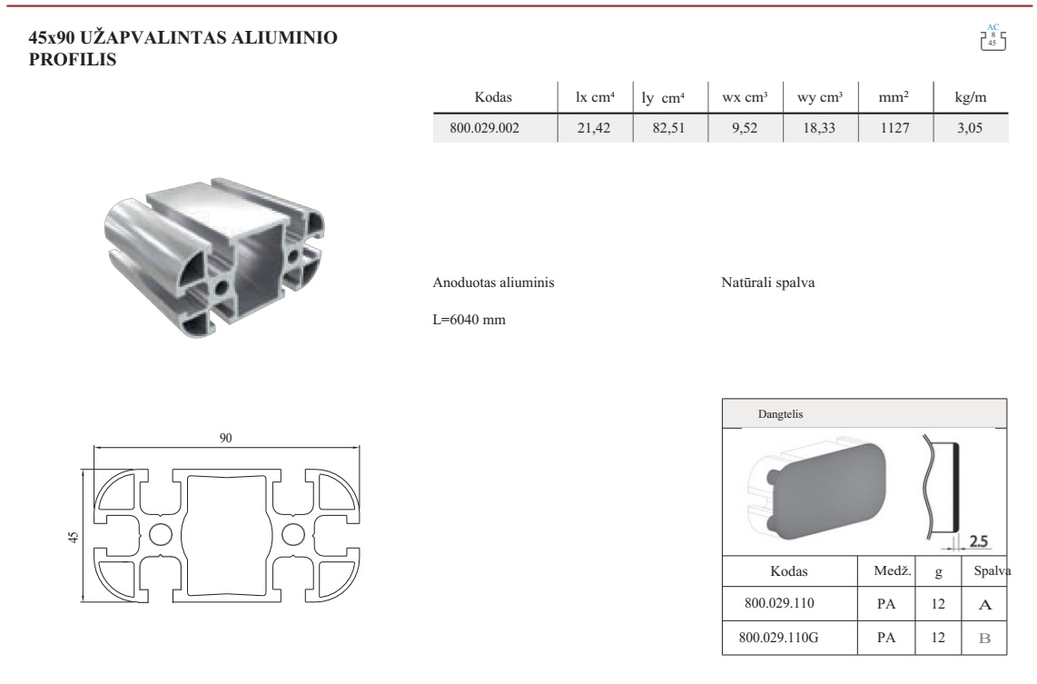 | 800.029.001 | 9,68 | 9,68 | 4,30 | 4,30 | 627 | 1,70 | 6040 | Anoduotas aliuminis |