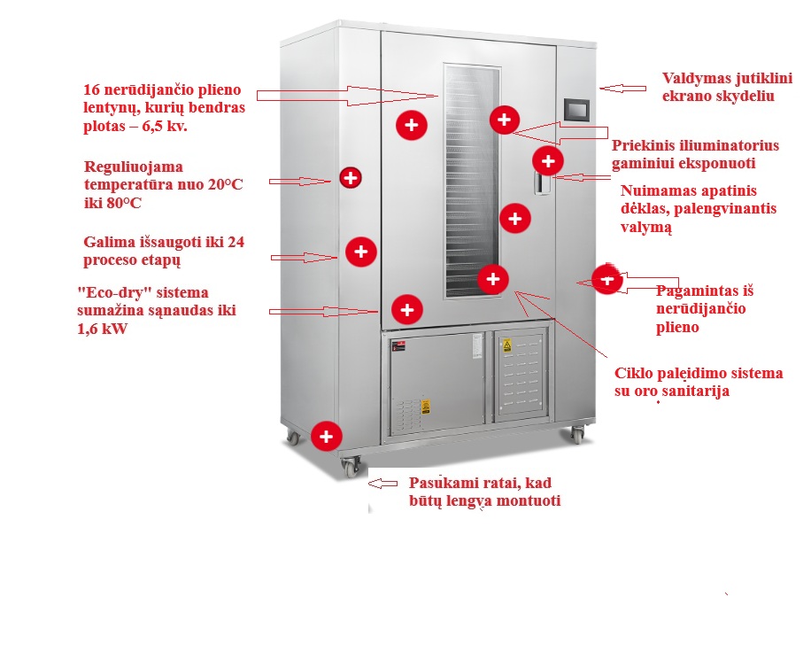 Profesionalus, kompaktiškas ir universalus pramoninis maisto dehidratorius, leidžiantis džiovinti arba dehidratuoti maisto žaliavas itin paprastai.