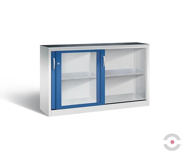 Spinta akrilo stiklo durimis, plotis 1200 mm, aukštis 1950 mm, gylis 600 mm, 3 lentynos, 3 stalčiai, pilkai-mėlyna, 161.801.131.