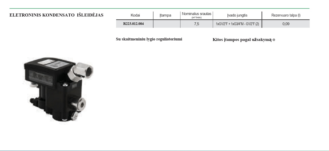 • Elektroninis kondensato išleidėjas 7,5 m3/min. su keliomis įvado jungtimis.