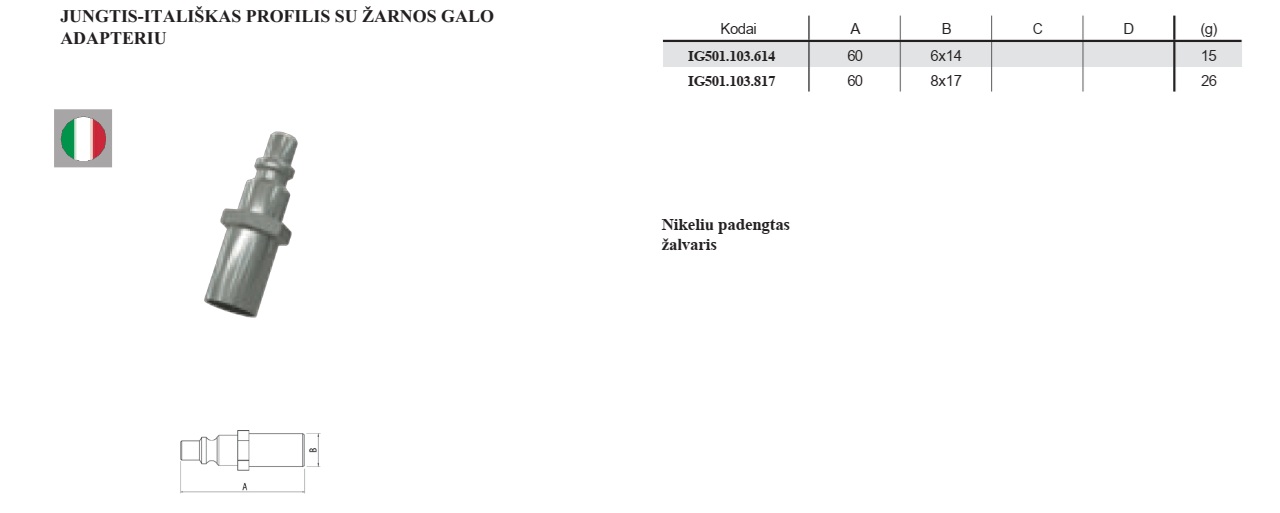 Greita žalvarinė jungtis-itališkas profilis su žarnos galo adapteriu