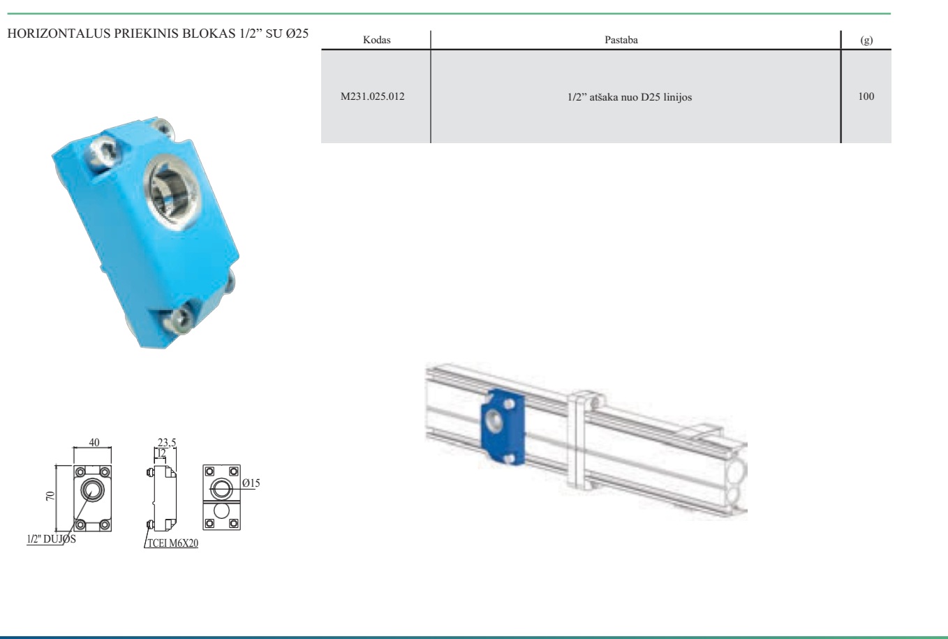 • Horizontalus priekinis blokas 1/2 colio su 25 mm kiauryme.