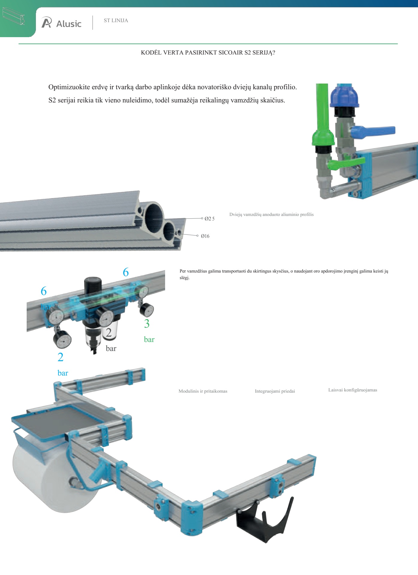 Daugiafunkcinis aliuminis profilis suslėgto oro sistemoms serija S2