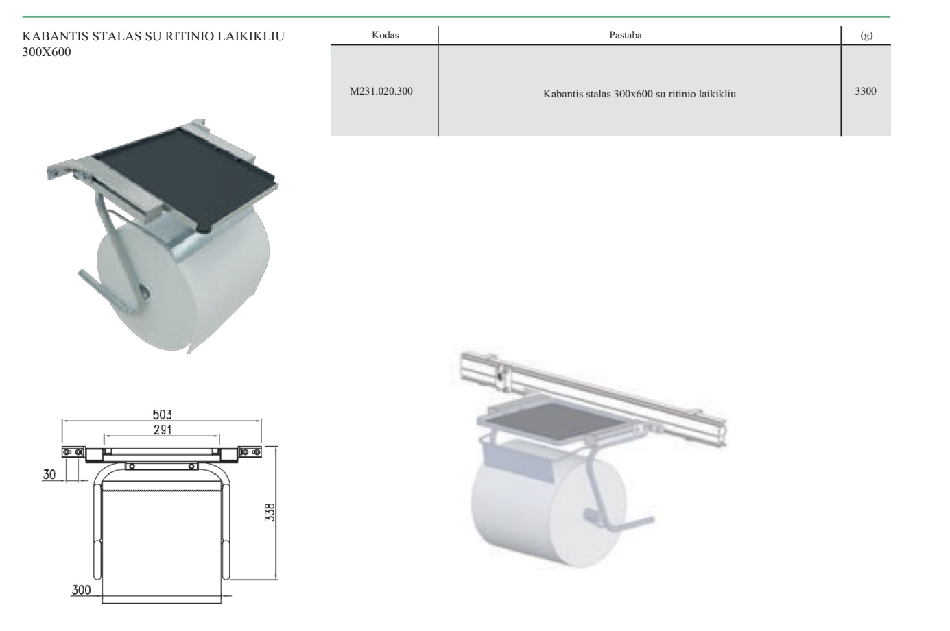 Kabantis stalas su ritinio laikikliu suslėgto oro sistemoms, serija 2