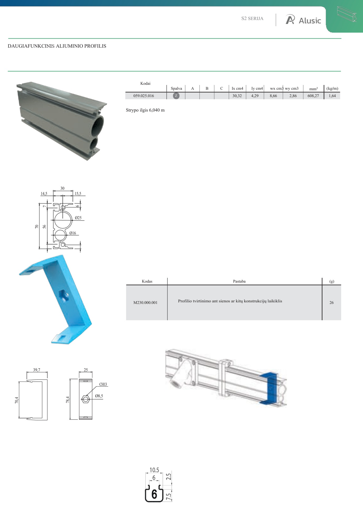 Daugiafunkcinis aliuminis profilis suslėgto oro sistemoms serija S2