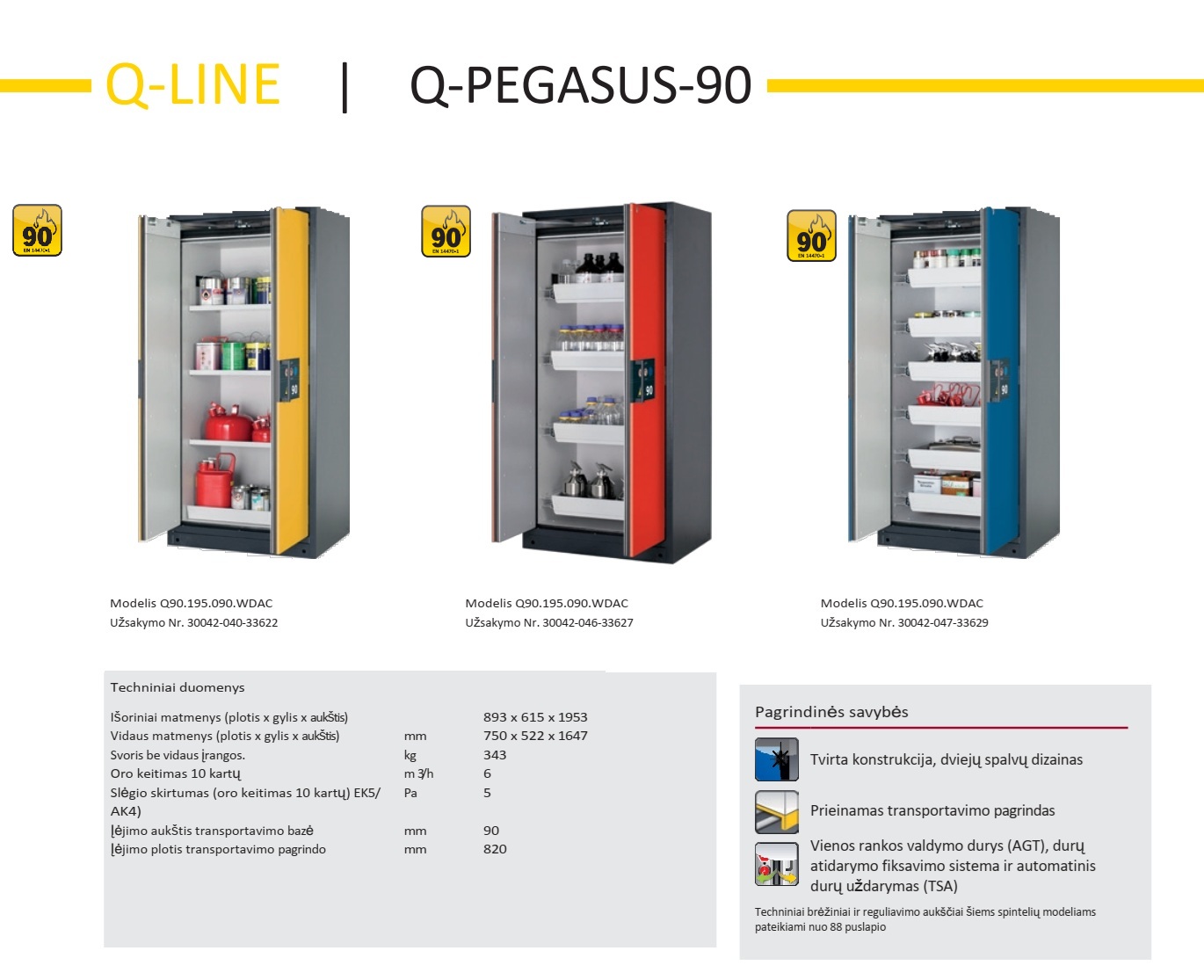Q-Line PEGASUS 90, 893 mm pločio degiųjų medžiagų saugojimo spintos, durys atidaromos viena ranka