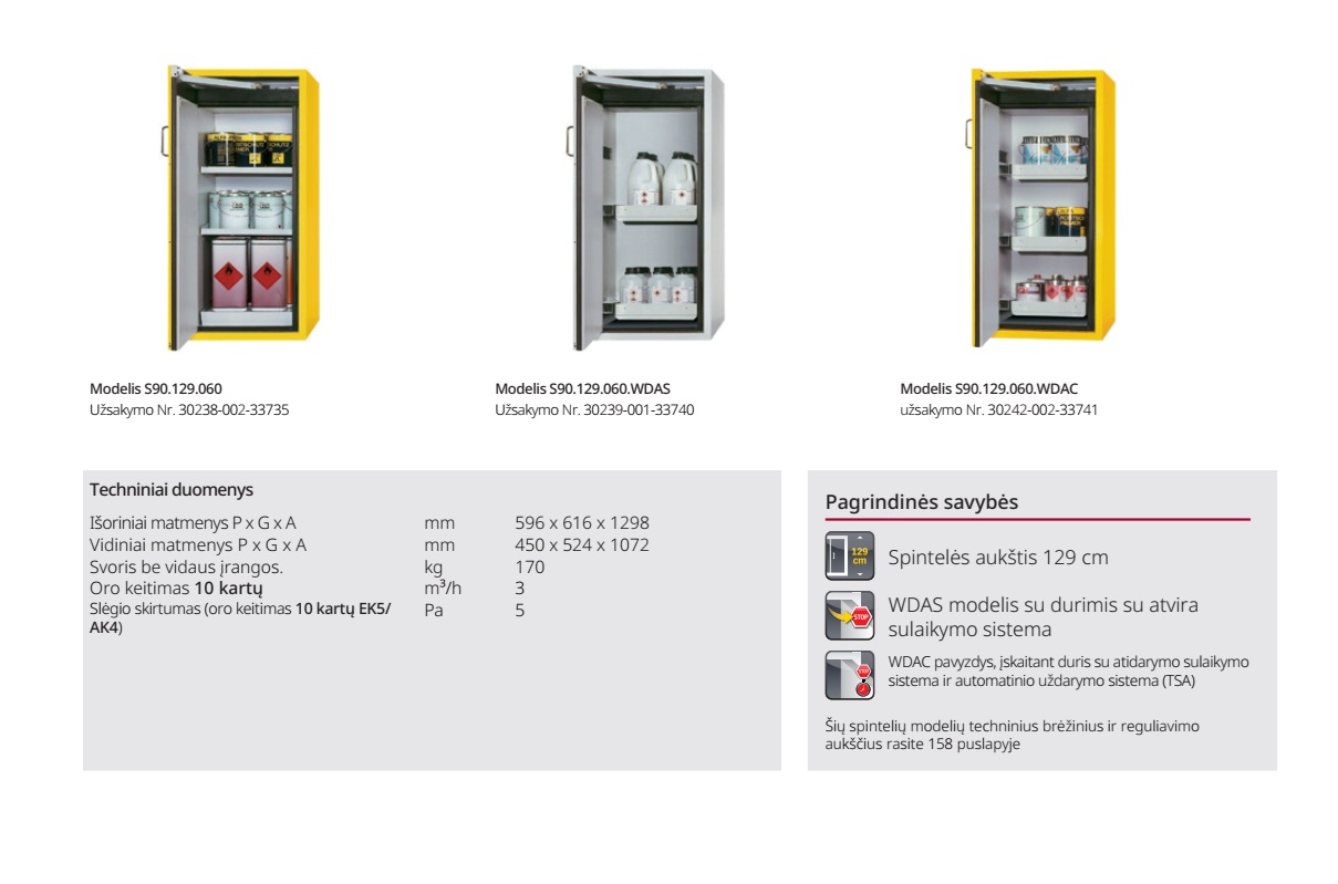 S-LINE CLASSIC-90 1196x616x1298 mm saugios spintos degioms ir šiek tiek agresyvioms pavojingoms medžiagoms