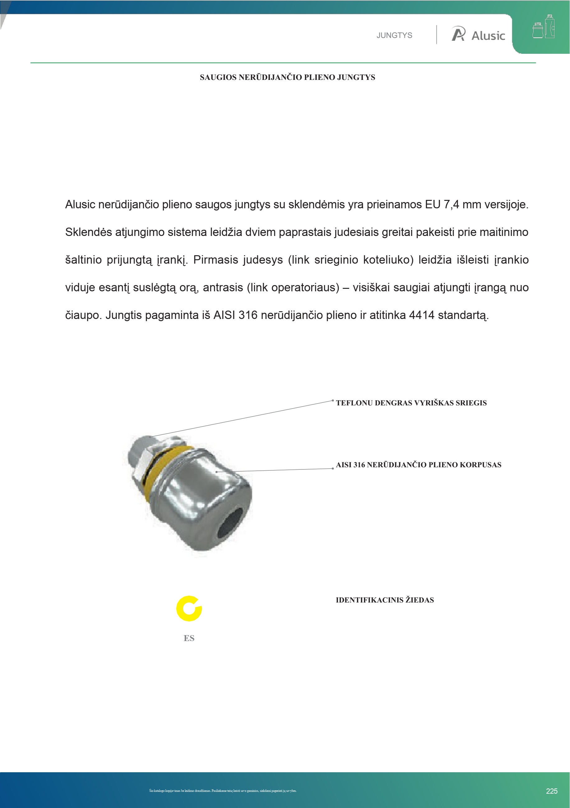 Alusic nerūdijančio plieno saugos jungtys su sklendėmis yra prieinamos EU 7,4 mm versijoje.