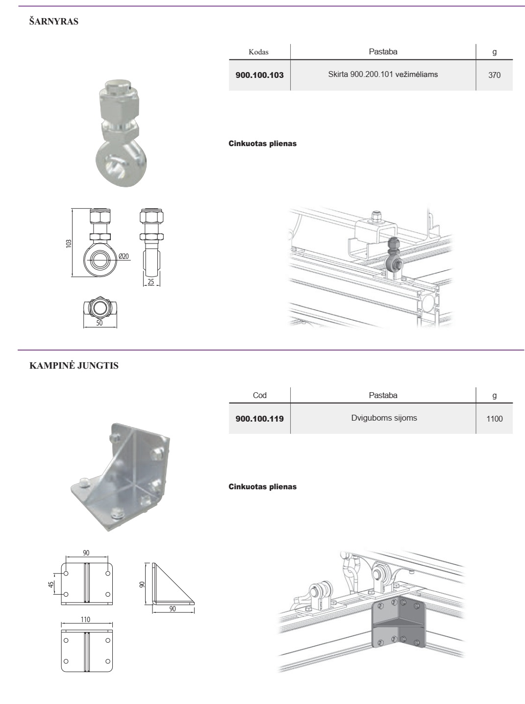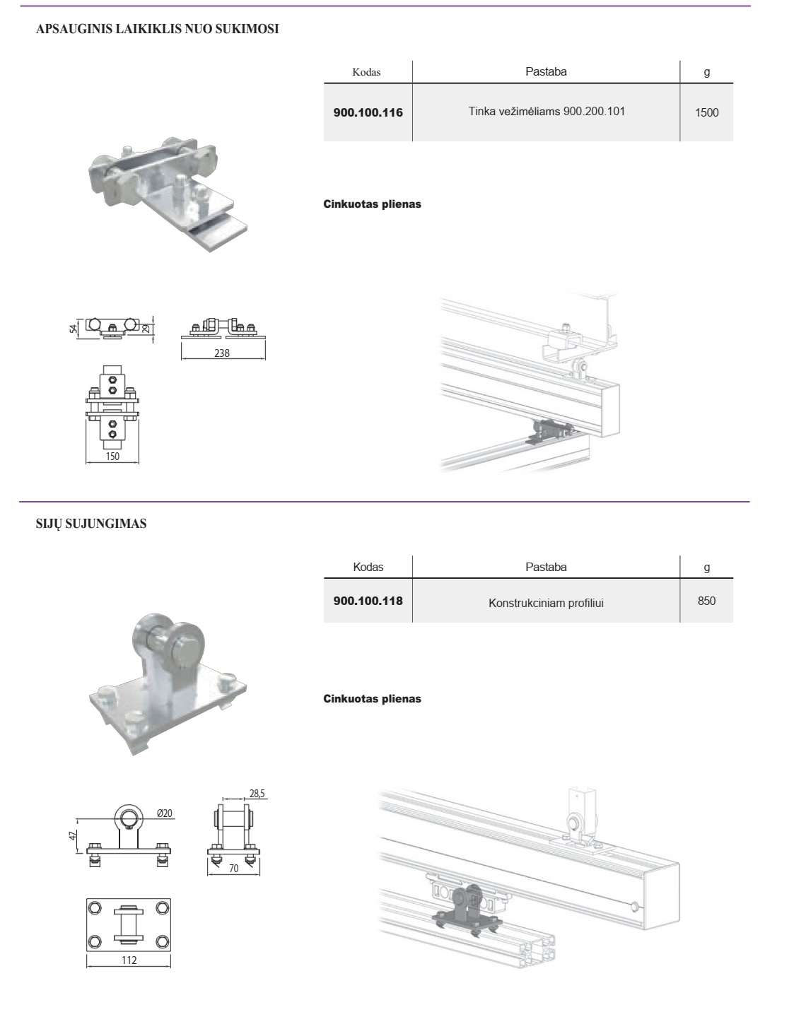 | 900.100.116 | Konstrukciniam profiliui | Cinkuotas plienas | 850 |