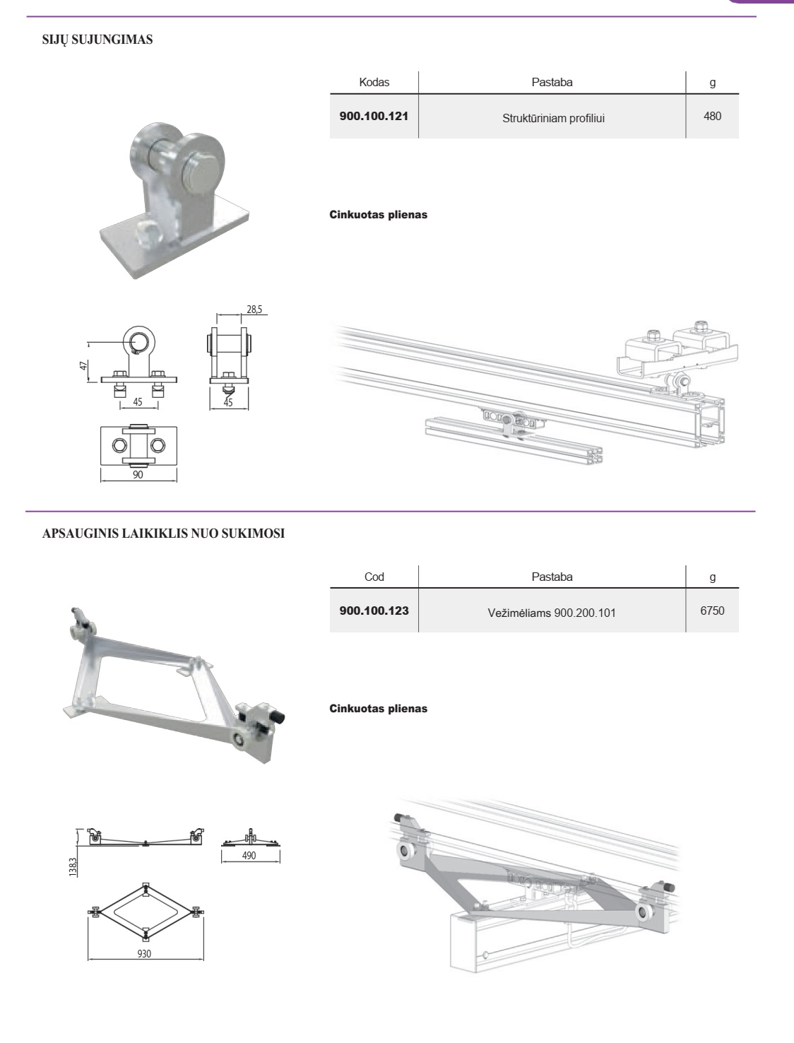 | 900.100.121 | Struktūriniam profiliui | Cinkuotas plienas | 480 |