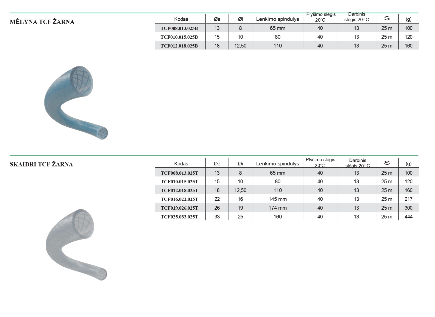 • Skaidri TCF žarna suslėgtam orui.