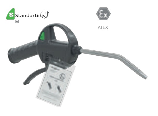 • Standartinis ATEX pistoletas sulėgtam orui su 100 mm plieniniu antgaliu..