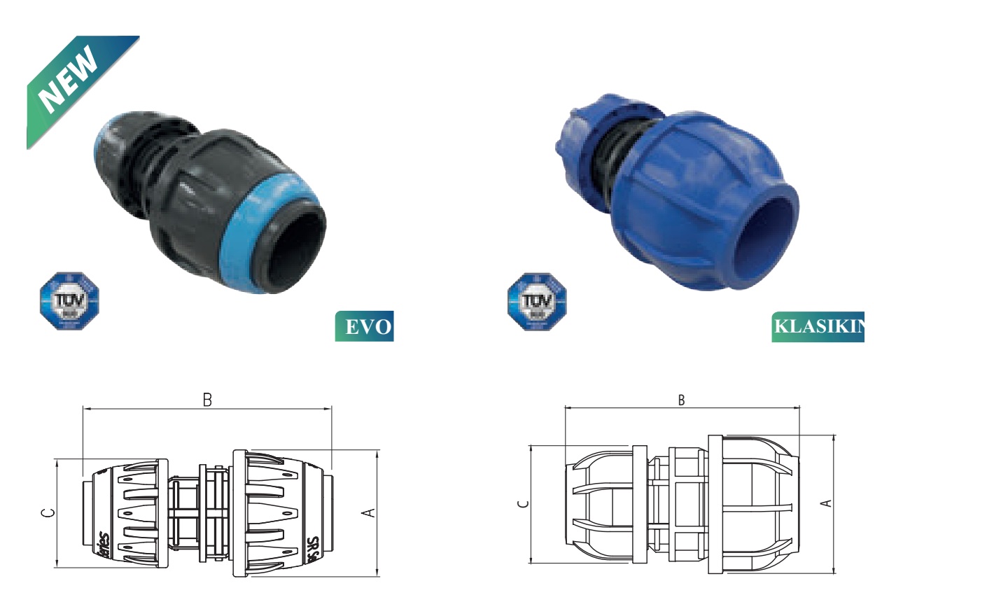 Tiesus UNION fitingas suslėgto oro sistemose, serija SR