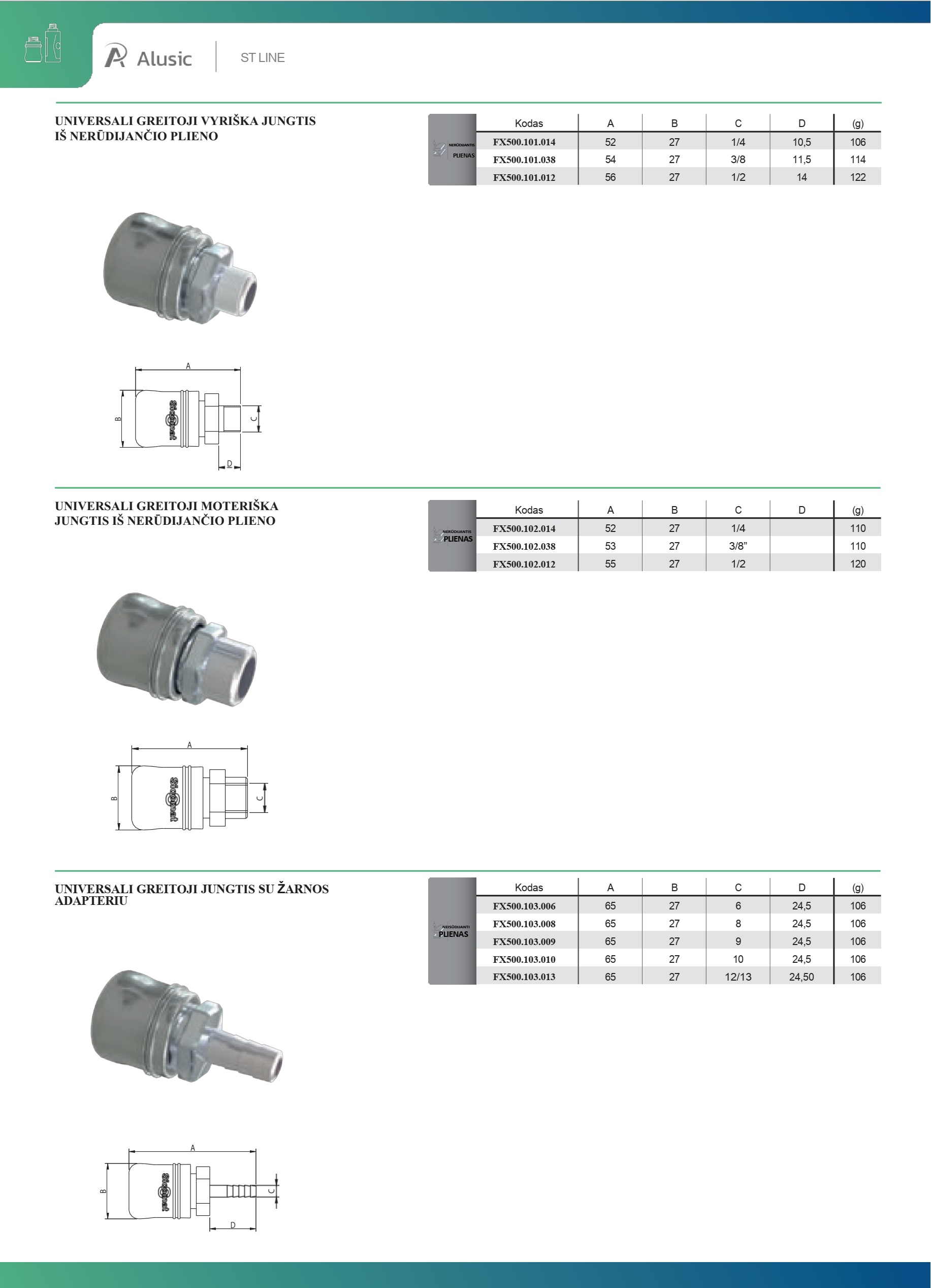 Universali greitoji moteriška jungtis iš nerūdijančio plieno