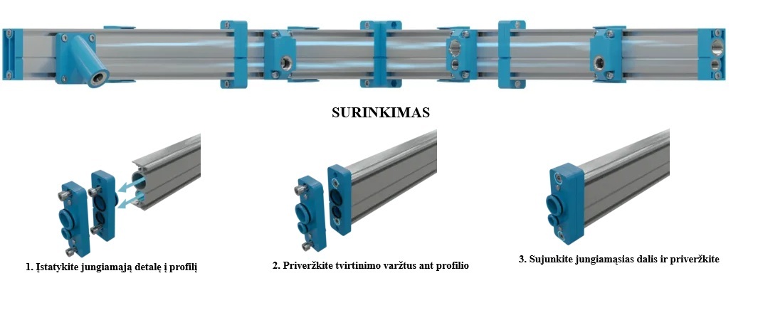 Daugiafunkcinis aliuminis profilis suslėgto oro sistemoms serija S2
